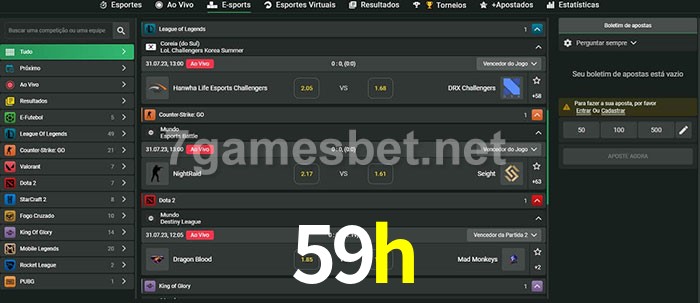 O 59h oferece uma grande seleção de opções de apostas em e-sports com probabilidades competitivas
